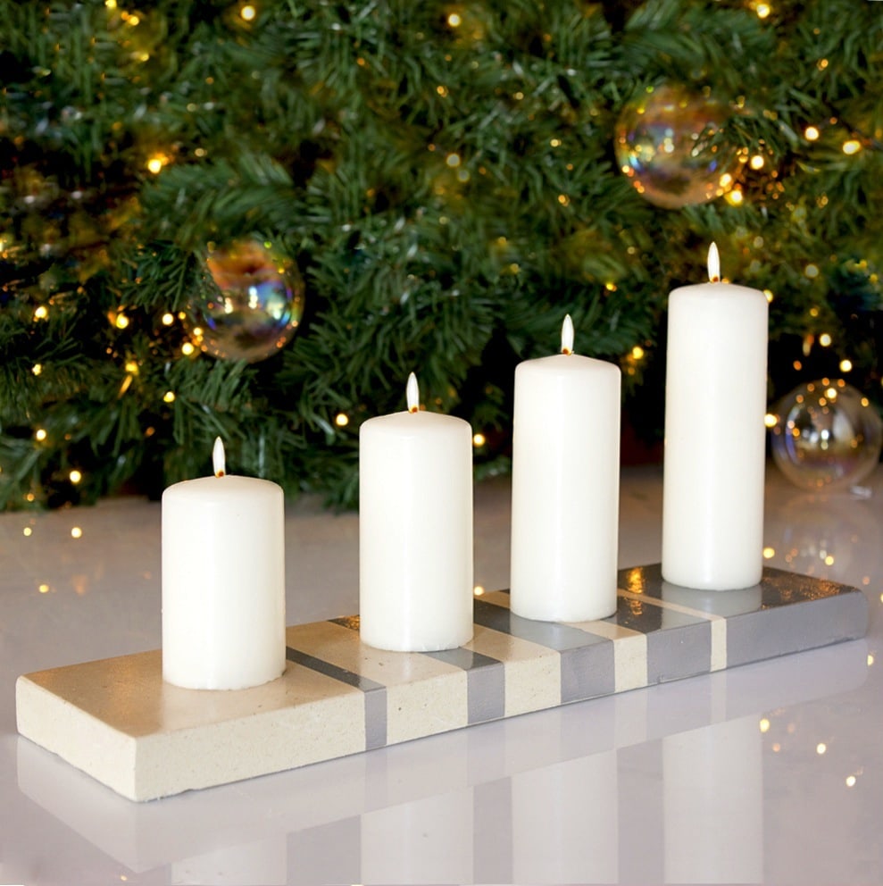 Advent wreath or Christmas candle holder in pietra leccese 40x11x2.5 cm