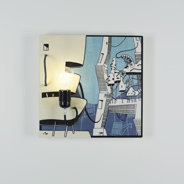 Sista2 (at this link) and Sista1, the second wall sconce fo 50x30x3,5 cm with vertical orientation, two visions of the same imaginary city “Sista” as the word “sister” is pronounced in slang, a very friendly city of refuge.