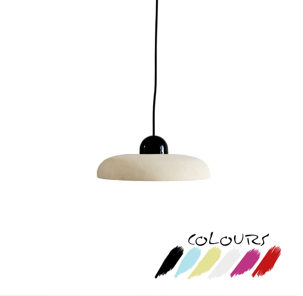 There a 6 different colors for the pendels: white, fuchsia, black, light blue, acid green and red. Supplied in separate packaging, the pendels have an E27 socket (bulb not included), maximum power 60W, maximum capacity 1.8 Kg and cable length of 120 cm.